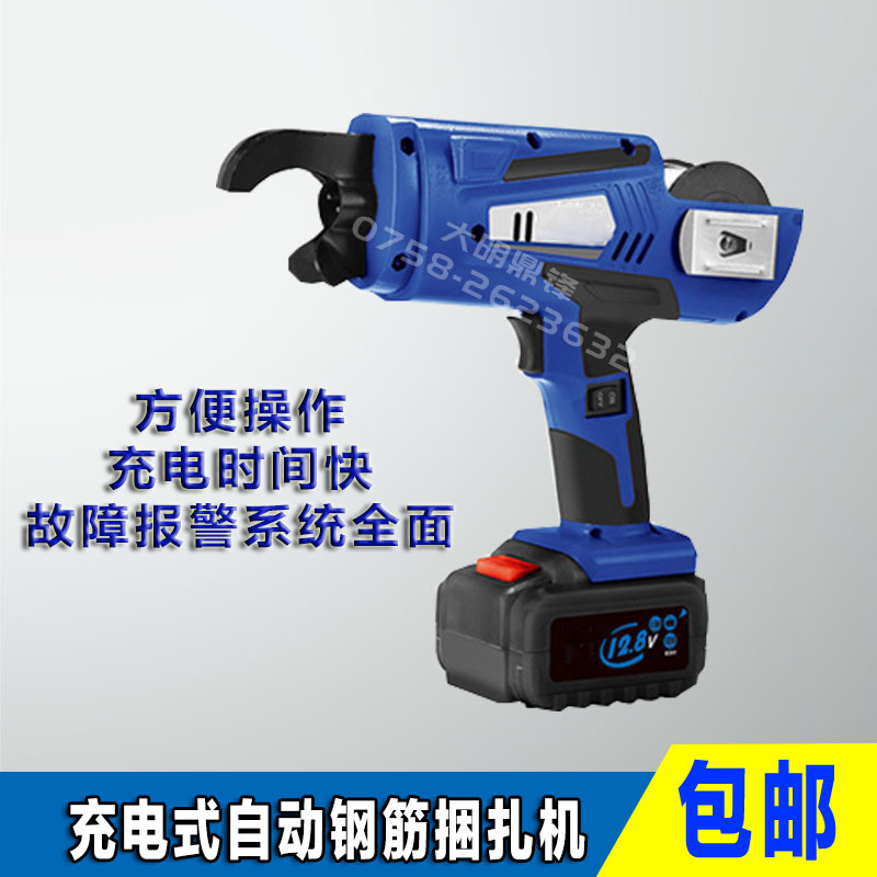 产品优点: 1.强劲的锂电池,充电时间70-80分钟,每次充电后可以连续捆扎2300-2500个结,使机器方便携带,使用简单快捷,全部实现一键化,大大节省劳动力。设置模块方便操作,仅仅用4个按钮,便可进行多模式的调节。故障报警系统全面监控机器的功能状态,且能做出相应位置的故障报警。 序号 参数项目 参数指标 1 整机尺寸 270x75*250MM 2 装箱尺寸 720x520X235MM 6台/件 3 电池容量 13200毫安时 4 电池电压 12.8V 5 充电时间 1.5小时 6 连续工作时间 6小时 7 扎结数/电池 3000次 8 出丝长度 300-500毫米 9 捆扎范围 8-34毫米 10 捆扎时间 0.8秒 11 重量 单机重约2.5公斤, 整套重约3.5公斤 12 铁丝直径 0.8毫米 13 扎丝重量 0.45公斤/卷 标配一卷扎丝,铁丝长度:110米