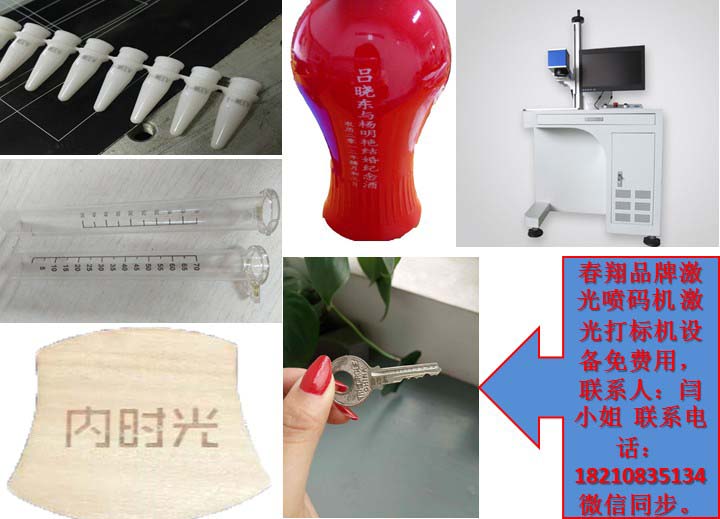 产品介绍 设备参数:激 光 类 型: 光纤 占 地 面 积:45*50*140mm 调节高度范围:400mm 调节角度范围:0°--90° 电源电压要求: AC 220V±5% 大 功 率: 500瓦 试用领域 激光这一高新技术为您的产品刻字、打标、绘图、防伪。适用行业多,范围广,尤其适用电子产品、五金制品、金属制品、塑料制品、不锈钢制品、电镀制品、汽车摩托车自行车配件、竹木制品、钟表眼镜、服饰皮具、工艺品等。如电子元器件、各种键盘、按钮、拉链、扣环、轴承、瓶盖、各种刃具、手术刀具、西餐具、五金工具、量具、钟表、眼镜、奖品、纪念品、各种机械的标牌及医疗器械等。 我们的优势 1、激光加工可靠性强。标刻的图形、文字、序号,清晰、耐磨,属于非接触性加工,因此加工的工件不受损、不变形。 2、电脑绘图、排版,科学性强。所需的标识,可根据客户提供的标识扫描绘图;序号完全自动调码。 3、防伪性能强。可使您的产品不易被假冒,货真价实,一定更畅销。 4、速度快、质量好,将为您的企业增添无穷的经济效益。 5、加工精细、美观,具有较强的欣赏性。标刻的标识精度高,美观、大方、观赏效果好。用其雕刻的工艺品,礼品更是一绝。 全国一一家可免费使用的激光喷码机、打标机。 随时欢迎来电咨询,咨询电话:微信同步,闫小姐 公司介绍 北京春翔科技发展有限公司创建于2011年7月,坐落于北京市昌平科技园区,注册资本金1330万元,获得“中关村高新技术企业”证书。公司专注于激光喷码打标相关应用技术的开发、咨询以及服务,产品坚持自主研发的导向,服务于全国各地不同行业的用户 公司始终奉行“品质决定成败、诚信铸就未来”的企业文化,立足公司的长远发展,高标准要求、高起点运作、高效能管理,2013年初即获得了“春翔”的商标使用权,为公司的可持续性发展奠定了坚实的基础。 公司坚持以“思路决定出路、出路在于行动”为创业理念,以关注客户为中心,以服务客户为焦点,在多个应用领域有突破,多项技术属国内首创,X1301的技术至今无人能够超越。公司产品应用一步步拓宽了市场领域,用户北至哈尔滨,南到广东省,涉及各行各业。 2016年春,公司在全国同行业里个提出供给侧变革措施:激光喷码机免费用!这样,一举解决了用户的选择痛点,一举扫除了行业的伪劣产品根基,还商业一个朗朗乾坤。 承接代加工服务 扫一扫,关注更多精彩! 春翔科技志向:做鹰,就要翱翔长空; 做鱼,就要遨游四海; 做品牌,就要高质量; 做服务,就要正能量、好口碑。