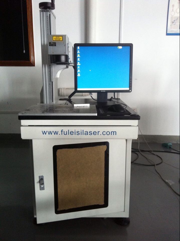 产品分类: 激光打标机系列 / 光纤激光打标机 产品概述: 光纤激光打标机的核心部件是主振功率放大(MOPA)、Q调制和高重频率脉冲掺镱光纤激光器,高可靠性的直流电源在专用控制卡的控制下驱动多模半导体激光器,多模半导体激光器发出的970±10nm的激光被耦合到加金属护套的5mm传输光纤中使掺镱双包层光纤中产生1.064微米波长的激光,激光在传输过程中不断被放大后扩束输出。扩束后的激光束投射到振镜扫描器上,通过计算机控制振镜快速转动及激光的开关,使激光束在X、Y方向扫描,通过F-θ透镜聚集形成几微米直径的光斑作用于加工工件上,使之表面瞬间烧蚀,汽化,后在工件表面形成需要的各种图形符号。 产品详细介绍 原理 光纤激光打标机的核心部件是主振功率放大(MOPA)、Q调制和高重频率脉冲掺镱光纤激光器,高可靠性的直流电源在专用控制卡的控制下驱动多模半导体激光器,多模半导体激光器发出的970±10nm的激光被耦合到加金属护套的5mm传输光纤中使掺镱双包层光纤中产生1.064微米波长的激光,激光在传输过程中不断被放大后扩束输出。扩束后的激光束投射到振镜扫描器上,通过计算机控制振镜快速转动及激光的开关,使激光束在X、Y方向扫描,通过F-θ透镜聚集形成几微米直径的光斑作用于加工工件上,使之表面瞬间烧蚀,汽化,后在工件表面形成需要的各种图形符号。 产品特点 1、优异的光束质量:FLS-FB系列光纤激光打标机光束质量比传统的固体激光打标机好,为基模(TEMOO)输出,聚集光斑直径10um,发散角是半导体泵浦激光器的1/4。特别适用于精密,精细打标。 2、使用成本低廉:电光转换效率高达到30%,整机耗电不到500W,是灯泵浦固体激光打标机的1/10,大大节省能耗支出。 3、免维护操作:激光器无需进行任何维护,也不用调整或清洁镜片. 4、使用寿命长:使用激光二极管作为泵浦源,其平均工作时间可达10万小时 5、加工速度快:加工速度是传统激光打标机的2-3倍。 适合材料 适用材料: 各种金属、合金及部分非金属,如ABS、PVC、环氧树脂、硅晶片、油漆(电子元器件封装绝缘层,汽车仪表按键,手机按键,音响透光键)等。 应用行业 广泛应用于电工电器、电子通讯、汽摩配件、精密五金、礼品饰品、眼镜钟表、仪器仪表和卫浴洁具等行业。