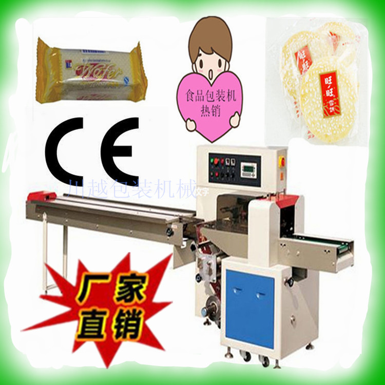 专业定制实惠食品包装机 枕式打包机械系列资料 ◆关于包装机: 包装机技术源自日本,包装机不但包装效率高而且包装机包装出来的产品外包装平整美观、包装封口严密无气泄漏外包装机有自动充气功能,起到保鲜保质作用。同时包装机为企业解决了包装难、包装时间长、包装效率不高效益提不上等问题,为企业产品在包装方面带来更多不可缺少的必要性,从而树立企业形象。 ◆关于川越: 川越将竭诚与海内外新老客户精诚合作,社会各界的认可和支持令我们更是信心百倍,我们会以不断创新、求实、奉献精神,提供优质高效的产品,为发展和扩大市场提供优秀服务…… ◆销售网络:全球。 适用范围 适合于口罩、橡胶手套、米通、糖果、雪饼、蛋黄派、巧克力、面包、方便面、月饼、日用品、工业零件、纸盒或托盘等各类有规则物体的包装。 性能特点 1.双变频控制,袋长即设即切,无需调节空走,一步到位,省时省膜。 2.人机界面,参数设定方便快捷。 3.故障自诊功能,故障显示一目了然。 4.高感度光电眼色标跟踪,数字化输入封切位置,使封切位置更加准确。 5.温度独立PID控制,更好适合各种包装材质。 6.定位停机功能,不粘刀,不浪费包膜。 7.传动系统简洁,工作更加可靠,维修保养更加方便。 8.所有控制由软件实现,方便功能调整和技术升级,永不落后。 欢迎定制【自动豆沙包包装机】稳定好用的速冻包子包装机 食品包装机 选配装置 1.打码机 2.直纹中封轮 3.网纹端封模 4.超大触摸屏 5.充气装置 6.排气装置 技术规格 机型 CY-250S 薄膜宽度 Max.250mm 制袋长度 30~280mm 制袋宽度 30~110mm 产品高度 Max. 55mm 膜卷直径 Max.320mm 包装速度 40~230包/分 60-250包/分 电源规格 220V,50/60HZ,2.4KVA 机器尺寸 (L)3770×(W)670×(H)1450 机器质量 800Kg 备 注 以上参数仅供参考,一起以实际为主 (五)售后服务: 凡购买本公司的产品后,我们派专业技术人员到贵公司安装,调试及操作培训,至贵公司技术工能熟练操作。我公司的所有产品从你购买日起,保修期为一年,在保修期内,我公司派专业技术人员及时上门无偿维护,一切费用由我公司承担。实行终身跟宗服务制。我们以先进的专业技术和优良售后服务为客户解决一切后顾之忧,一旦承诺,终身相随。机器免费汽运到需方单位,需技术人员上门的能当天出发的,绝不拖到第二天。一年后配件如因使用不当造成破损,只收取成本费。长期以来都只能靠人工包装,效率低、成本高,佛山市川越包装机械有限公司已解决这个包装上的难题,并试制成功,为多家生产厂家安装和改造包装机器,您如果愿意提高生产效率和产品品质,欢迎您咨询我们!