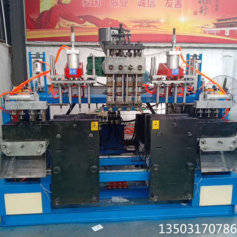 ?东光县祥龙机械厂是一家集研发、生产、销售、售后为一体的塑料包装机械和塑料中空制品的专业生产厂家。主要经营范围有: 全自动塑料吹瓶机、PET吹瓶机、高阻隔挤出机等系列吹瓶机械、配套吹塑模具及塑料中空制品。 本型号集挤出,合模,脱模,切口,去料尾为一体实现了真正的全自动.原料PE/PP等.主要有PLC和人机界面组成,彩色触摸式操作屏.机头有单,双,三,四,五模头.采用液压锁模,高效节能. 1.控制系统:整机动作控制采用PLC人机界面,显示机械动作的实时监控功能,可显示多种语言,如中文,英文等,实现系统多功能和智能化。电脑(智能触摸屏电脑),电脑程序简单、快捷、便于操作,本电脑程序不伤气针,兑口平整,完全切断(本厂程序) 2.减速机采用国内一线品牌(国茂硬齿面)噪音低,运行稳定 3.电机采用大厂家全铜变频专用电机,整机电器采用正泰品牌,接近开关采用进口品牌 4.油缸采用HOB重型国标油缸(GB国标油缸)。油站系统采用高效节能低噪音油泵系统。 5.螺杆采用舟山品牌38铬钼铝且氮化不低于60丝。且长径比选用25:1,产量高(高产能新型混炼螺杆)螺杆设计既能满足螺杆高产量,也能保证塑化均匀。 序号 名 ??称 数 ??据 说 ??明 1 制品容量 100-500ml ? 2 每模制品数量 4个(两模) ? 3 合模次数 100-600次/小时 ? 4 产量 5000-40000个/24小时 ? 5 小容模厚度 100mm ? 6 模板大开距 150mm ? 7 大锁模力 50KN ? 8 主机螺杆直径 Φ65 38CrMoAl 9 螺杆长径比 25/1 ? 10 大塑化能力 50公斤 ? 11 主电机功率 15KW 变频 12 加温功率 12kw ? 13 液压电机功率 5.5KW ? 14 吹气方式 上吹气兑口 ? 15 操作系统 微电脑PLC ? 16 机组总质量 3000公斤 ? 17 模板尺寸 380*660mm ? 18 外形尺寸 2.9*2.2*2m ? 19 耗气量 0.5m3/min ? 20 切料方式 热切料 ? 21 电源 380v(三相四线制) ? 22 调速方式 变频调速