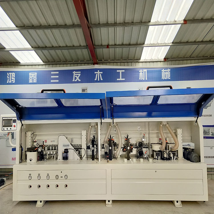 全自动封边机的保养、故障及其解决方法 全自动封边机如何保养 1:首先要保持机体各个位置的情节,比如说胶锅附近被板子带出的胶会干到其他零件上,会直接影响其正常工作。 2:预铣部分、齐头齐尾部分、修边刮边部分会有大量切削下来的封边带屑,即便是有吸尘装置也不会吸得很干净,到处飞的封边带屑会影响各个滑动、滚动的部件,还会对修边造成影响。所以每班都要清理封边带屑。 3:运转部位的检查,定期检查各个运转部位的声音,温度是否有异常噪音及发热的现象。 4:定期给运转部件加油。家具夹板全自动封边机的维修1.您的全自动封边机压料部分出现问题导致修边及抛光设备的不正常工作。如果板材压不紧,或者压料立板前后有高低,当板材行进至涂胶部分时由于涂胶轮及压紧轮对板材侧面施加了一定的压力,造成板材发生位移,偏离基准线,导致后续工艺不能完成。 解决方法: 1.将板材压紧,且前后松紧度一致,再将修边刀具的基准靠尺和仿形轮靠到板材上,后调整刀具直至理想效果,问题便迎刃而解了。 2.您的修边基准面没有找到板面。修边刀能够精准的将封边条修出理想的线条得益于修边刀旁边的水平靠尺(斜压轮或圆弧靠板)和垂直靠尺(仿形轮)。如果它们不能紧贴在行进中的板材上,势必不能修出合适的线条来。解决方法:将一块长的且端面平整的板材送入家具板材封边机内(注意不要涂胶),当板材行进到能覆盖抛光、刮边、精修、粗修这个位置时将输送带停下,以板面为基准,把上面所提到的水平及垂直基准件靠到板材上,将刀具切削刃靠近板材边缘,等待后面进行微调,直至理想效果出现。3.有螺丝松动造成修边不稳定。解决方法:找到基准,紧固螺丝,调整刀具。当然说到这里您可能要问,怎么没讲抛光啊,如果修边都没修好还谈什么抛光啊,相信您能解决了修边的问题,抛光也就轻松搞定了,毕竟抛光简单,而且没有什么精度可言是不是。全自动全自动封边机齐头磕板怎么修理1.后齐头下行速度过快或下行气压过大,使得靠尺撞击在板材上产生磕板的现象。解决方法:调整后齐头气缸进/排气调压阀,使得齐头下行的速度和力量降低。2.前齐头上行压力过大,板材行进到此撞击前齐头靠尺所出现的问题。解决方法:调整前齐头上行调压阀压力,使其力量变得柔和些。 3.前齐头下行信号的行程开关位置不对或者坏掉,板材行进到预定位置时如果碰不到行程开关或者碰到的开关坏掉的话,那么前齐头就没有下行的信号,所以就会嗑板。解决方法:调整行程开关的位置或者更换。4.齐头靠尺导向轮缺失造成靠尺嗑板。解决方法:安装新的导向轮。5.齐头靠尺接触面有毛刺。解决方法:用细纱布磨掉电气故障。包括主机停转、升温不快、程序紊乱等,不及时排除,会烧坏电机和加热管,甚至损坏整个机械系统。维修时主要检查电器控制箱、电机、加热管、延时器等 。这种检修一般要由专业人员或由制造商厂家修理。 2、气路故障。包括气阀失灵、漏气,气压偏低,切刀、送料不工作等,主要检查各种气动元件的完好情况,更换零件可以在制作厂家技术人员指导下进行。 3、机械故障。主要有传动失灵,涂胶不匀,送料故障和切刀故障等,主要检查各机械部件的完好情况和牢固部位,传动部位是否发生偏移。4、粘接故障。如粘不住、跑偏、夹带等,这是一个综合性故障,与胶轴、封边带、溶胶、基材和操作有关。这种故障可能交替出现,也可能单一出现,具体维修要视情况而定。 鸿鑫三友专业生产木工机械,本厂研制的手动曲直线封边机、半自动封边机、全自动封边机、精密裁板锯、砂光。底漆砂光机、拉丝机、压刨等机械设备,获得了广大客户的认同机赞誉。产品的研发创新是企业发展的核心动力,专业研发人员对产品的设计以追求完好为己任。本公司的宗旨是:诚信、求实、创新的精神,以科技为先导,靠质量兴企业,坚持以人为本,客户为中心,追求*,服务真诚的企业理 鸿鑫三友木工机械真诚欢迎国内外朋友来我公司共同合作和发展,将公司更好、更新、跟高效的 产品提供给您,给您的企业腾飞插上翅膀,做到让客户100%满意。 木工定制封边机,鞋柜衣柜封边机,全自动封边机 鸿鑫三友为您提供一站式购机、一站式售后、免费上门培训全自动封边机整体解决方案。为客户分布工艺分析---鸿鑫三友免费工厂规划--- 鸿鑫三友安装调试---鸿鑫三友免费操作培训---鸿鑫三友免费软件培训---鸿鑫三友免费保修终身---鸿鑫三友终身免费维护
