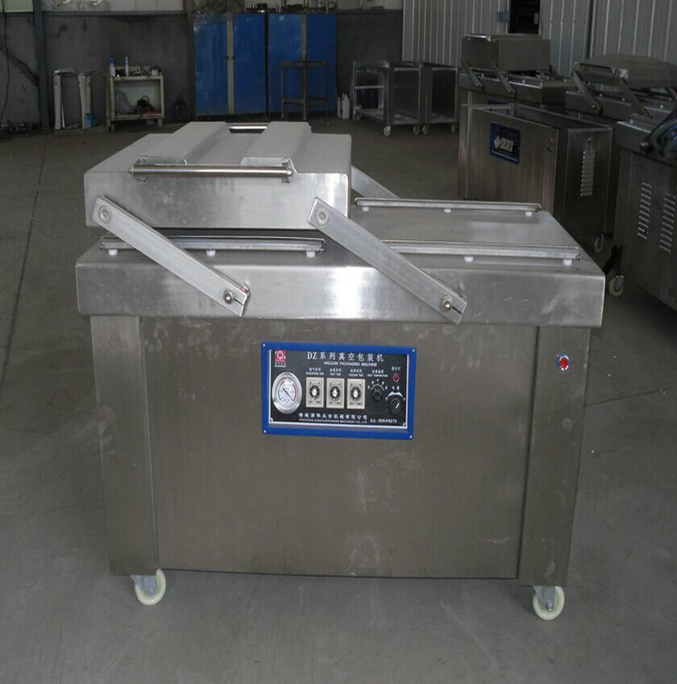 全自动真空包装机 电话: QQ :3350781402 随着人们生活水平不断提高,对各种方便食品的需求也随之大增,这近一步拉动了我国食品包装业的快速发展。真空包装机是发展比较快的包装机械之一,拥有着广阔的发展前景。真空包装机种类又分很多种,下面给大家介绍一下真空包装机。 定义 人们常常把被包装物放到真空室的外侧完成真空包装的设备叫真空包装机。 原理 真空包装机是通过抽气嘴放到被包装物的包装袋内,抽空空气,退出抽气嘴,然后完成封口。 特点 1、排除了包装容器中的部分空气(氧气),能有效地防止食品腐败变质。 2、采用阻隔性(气密性)优良的包装材料及严格的密封技术和要求,能有效防止包装内容物质的交换,即可避免食品减重、失味,又可防止二次污染。 3、真空包装容器内部气体已排除,加速了热量的传导,这即可提高热杀菌效率,也避免了加热杀菌时,由于气体的膨胀而使包装容器破裂。 在食品行业,真空包装应用非常普遍,各种熟制品如鸡腿、火腿、香肠等;腌制品如各种酱菜以及豆制品、果脯等各种各样需要保鲜的食品越来越多地采用真空包装。经过真空包装的食品保鲜期长,大大延长食品的保质期。 ? ?适用于各种塑料薄膜袋、复合膜袋、铝箔袋的真空包装。对各种肉制品、禽产品、酱菜制品、海产品、大蒜制品、山野菜、粮食、医药、生物制品、电子元件等各种固体、粉状物、流体、半流体等进行真空包装,以达到隔氧保鲜延长产品的保质期,提高产品档次。 ?? 真空自动左右摇摆,效率高、工人劳动强度低,运行平稳; 需要保鲜的食品越来越多地采用真空包装。经过真空包装的食品保鲜期长,大大延长食品的保质期。 注意事项 在选择真空包装机时,不应单纯按型号去选取机型,通俗讲:由于各个用户所生产的食品(包装物)不尽相同,包装尺寸不尽一。 组成 真空泵,电机,真空室,封口条,有机玻璃板上盖,气囊,电磁阀等. 技术特点 1、 进出料方式:前进右出式 2、 压缩真空包装机采用热箱固定瞬间加热方式,节省能源 3、 特殊电热排列,热量分布均匀. 4、 机体小巧,占地面积小 5、 适用于小批量生产和中量生产.可配合流水线作业,提高效率的真空包装机器 6、 采用台湾、日本、韩国原装进口零配,性能稳定可靠 优势: 无论从提高包装机械行业的产品质量和生产效率方面,还是从消除加工误差和减轻劳动强度方面,都表现出十分明显的作用。尤其是对食品、饮料、药品、电子等行业而言,都是至关重要的。自动装置和系统工程方面的技术正在进一步深化,并得到更广泛的应用。 小型真空包装 小型真空包装机适用于以复合薄膜或铝箔袋封口,外形小巧、功能实用、操作简便的家用真空包装机,单室真空包装机价格是经济实惠的一种类型,全自动小型真空包装机采用微电脑程序控制操作系统,机电一体化技术结合,很大程度上满足了人们日常生活的需求。比如保存食物、保存床上用品等。特别是对于棉麻织物的保存,抽真空后大大节约了空间,很受用户欢迎,真空包装机说明可参考导航栏中“行业知识”。 维护保养编辑 1、真空包装机应在温度-10℃—50℃,相对湿度不大于85%,周围空气中无腐蚀性气体,无粉尘、无爆炸性危险的环境中使用。像打包机和收缩机一样,本真空包装机为三相380V电源。 2、为真空包装机确保真空泵正常工作,真空泵电机不允许反转。应经常检查油 茶叶三维透明膜包装机 位,正常油位为油窗的1/2-3/4处(不能超过),当真空泵中有水分或油颜色变黑时,此时应更换新油(一般连续工作一两个月更换一次,用1#真空汽油或30#汽油、机油也可以)。 3、杂质过滤器应该经常拆洗(一般1-2个月清洗一次,如包装碎片状物体应缩短清洗时间)。 4、连续工作2-3个月应打开后盖30对滑动部位及开关碰块加润滑油,对加热棒上的各连接活动处应视使用情况加油润滑。 5、对减压、过滤、油雾三联件24要经常检查,确保油雾、油杯内有油(缝纫机油),过滤杯内无水。 6、加热条、硅胶条上要保持清洁,不得粘有异物,以免影响封口质量。 7、加热棒上,加热片下的二层粘膏起绝缘作用,当有破损时应及时更换,以免短路。 8、用户自备工作气源和充气气源,真空包装机工作压力已设定为0.3MPa,比较合适,无特殊情况不要调节过大。 9、真空包装机在搬运过程中不允许倾斜放置和撞击,更不能放倒搬运。 10、真空包装机在安装时必须有可靠接地装置。 11、严禁将手放入加热棒下,以防受伤,遇紧急情况立即切断电源。 12、工作时先通气后通电,停机时先断电后断气。 公司主营产品有:巴氏杀菌机、蔬菜清洗机、滚揉机、斩拌机、真空包装机、夹层锅、屠宰设备等食品机械。
