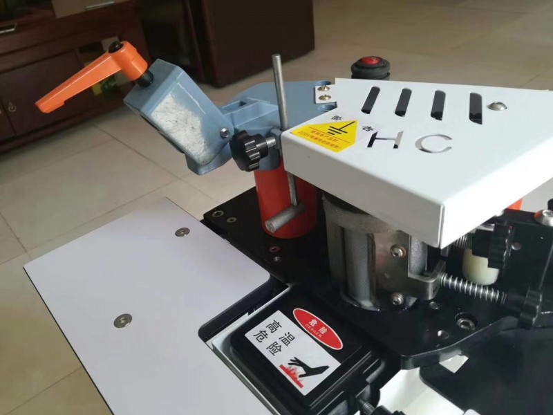 手提封边机功能特点 1.封边带的适用宽度范围增加至10mm-60 mm 2.主机供胶系统:供胶轴上下两支点固定,结构稳定,坚固耐用。 3. 特殊胶盆保温设计; 容量加大且预热时间短。 4. 温控器:根据封边带及热溶胶所需的溶胶温度,自动控制温度。 5. 调速器:根据不同涂胶和压带需要调整机器速度。 6. 所有电器配件均达到UL及CSA标准,整机已符合CE认证 手提封边机优点 手提封边机精简、轻便、质优、价美 可以直接适用于板式直线与弧形不规则边框封边作业 手提木工封边机安装上固定支架配件时,其使用方式则与传统曲直线手动封边机相仿 手提木工封边机可随意地转换工作场所, 到达装修工地进行现场施工, 适合装修行业使用。由于 其灵活性高,所以对于大型木板的封边更加实用,不需要多人操作,操作起来也方便快捷。 手提封边机同时适用于各种不同材质的封边带:如三聚氰胺纸、木皮、塑料(PVC或AB