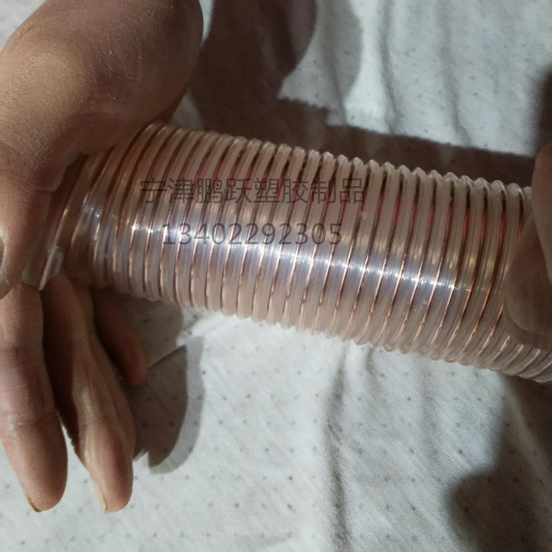 宁津鹏跃胶制品有限公位于山东省德州市。是一家专业生产、销售pu软管,工业软管的厂家。 主要产品有:pu管、木工管、吸尘管、工业软管、抛丸机软管、扫地车管、耐磨管、pu木工管、工业吸尘管、耐磨软管、通风管、排气管、输水管、耐压管、网纹管、食品级软管、输酒管等。 公司目前旗下有员工150人,年产销200吨,年销售收入近500万元。 公司一贯坚持“质量,用户至上,优质服务,信守合同”的宗旨,凭借着高质量的产品,良好的信誉,优质的服务,产品畅销全国近三十多个省、市、自治区以及远销美国、韩国、日本、马来西亚等国家。 竭诚与国内外商家双赢合作,共同发展,共创辉煌 关于价格/包装/物流: 1.由于产品材质规格的不同,信息中报价仅供参考,如果您购买的数量较大,我们会根据产品和数量报优惠的价格。详情请电话微信咨询 2、包装:物流运输标准包装。 3、物流:快递/物流,可协商。 规格:内径:25—550mm 壁厚:0.6—1.5mm 长度:10米,15米,20米 结构:管壁材料:聚氨酯 增强筋:PC合筋 硬度范围:80A—90A 温度范围:-35—90°C,短时间能到120°(3个小时) 扫地车除尘软管、工业吸尘器软管用途:磨损性固体,如灰尘,粉末,纤维,碎屑和颗粒物; 气态和液态介质;工业除尘和抽吸,工业真空吸尘器,纸或织物纤维抽吸; 供除尘和吸取式厂房,通风排气;作为抗磨损保护管具有较强的耐磨特性,轻型。可任意弯曲,可定做防静电型及食品级软管。 扫地车除尘软管、工业吸尘器软管应用:适用于除尘和抽吸设备、工业用吸尘器、空调及通风技术,化工行业等。如:固体研磨物(粉尘、纤维碎屑等),活性介质(油蒸汽、焊烟等)。 扫地车除尘软管、工业吸尘器软管特性:良好的抗化学性能;优越的耐磨性能; 耐压,耐真空性; 管壁材质达食品级标准产品采用德国进口耐磨PU材质内嵌塑料合成筋加工而成。较“PU钢丝加强软管”优点: 1、内壁非常平滑、可减少流动物的阻力。 2、软管受重压后可恢复原状、不变形。 3、加强筋较粗并与壁管牢牢粘接,经常在地面拖拽时软管不易损坏;缺点:价格略高于PU钢丝加强软管。 也可按客户要求定制口径、长度、壁厚、颜色等。 备有连接元件及特制卡箍。