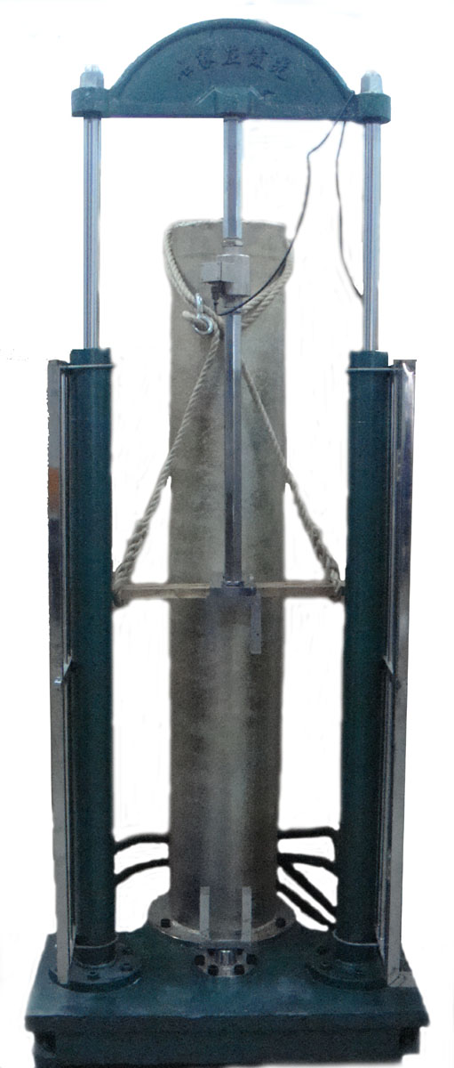 一. 使用前必读 1.1安装使用本机前,请务必仔细阅读本说明书,并妥善保管以备将来参考使用。 1.2液压油用户自备 本机使用45号或46号抗磨液压油工作液,安装试机前请注入40升。冬季环境温度过低时,使用前开动电机空载运行10分钟后再负荷。 1.3检查进线电流 本机使用380V三相四线电源,相线和零线不得接错。进线开关或插座允许电流不小于10安培。 1.4机器就位 工作环境:室内0℃~+40℃ 安装尺寸: 控制柜:宽850mm、前后长600mm、高1700mm。 液压工作台:宽860mm、前后长700mm、高(缩态)1800mm、(伸态)2800mm。 安全帽试验台:宽750mm、前后长900mm、高1900mm。 相对位置:控制柜居中、液压工作台居右、安全帽试验台居左,各台之间安装间距不大于400mm,为了便于试验操作,试验机距建筑物应留有0.8米的通道,试验机前应有3m*2m的操作空间。 运输重量: XGYS-20:800kg; XGYS-30:800kg; XGYS-50:9000kg; XGYS-100:980kg; XGYS-300:1500kg; 1.5关于紧急停机 在安装调试过程中遇到紧急情况:如电磁阀不能释放、电动机异常运转、试品原因等,存在损坏机械部件或击伤试验人员的可能时,要立即断开断路器。 1.6正确选择传感器 试验机控制柜、液压试验台、安全帽冲击试验台用导线可靠接地,以保证测量精度。 1.7关于精度 本机出厂前均已经过精确检定,请勿擅自设定传感器参数与系数,否则将导致测量误差加大。也可与当地技术监督部门联系检定。 1.8大出力 本机大出力分为300KN、100KN、50KN、30KN、20KN三个规格,出厂前已调整好。旋转压力表下部的梅花旋钮将改变本机的大出力,如果出力过大,可能损坏机械部件,如果出力过小,则可达不到设定值,请勿轻易调整该旋钮。 1.9安全设施 液压试验台、安全帽试验台均配置了安全围网,请按要求安装使用,确保操作人员的安全。 1.10联系方式 本机需要维修时,您可通过信函、传真或E-mail与我公司联系,我们对您的任何问题或建议,均会做出快速反应。本说明书未能详述的,您也可与我公司联系,我们将尽快为您解决。 二、性能概述 本拉压力试验机是我公司根据国家电力公司关于《电力安全工器具预防性试验规程》的规定研制,可检测安全带、登杆脚扣、登高板、竹(木)梯等电力安全工器具性能指标,分为五种型号:XGYS-20、XGYS-30、XGYS-50、XGYS-100、XGYS-300型。其结构上由双缸立式加载系统和单片机测量控制系统组成,可切换的手动操作和自动操作系统双重设计。在自动操作系统中,通过触摸屏和人机对话可直接选择安全工器具名称进行预防性试验,也可自行设定参数进行其它材料的力学性能试验,所有的试验参数和操作提示均用中文显示在液晶触摸屏上,并能打印符合《规程》要求的试验报告。 三、预防性试验项目 3.1安全带(围杆带、围杆绳、护腰带、安全绳) 3.2脚扣(7-12米、8-15米、10-18米) 3.3升降板 3.4竹(木)梯 3.5安全帽(冲击试验、穿刺试验) 3.6本机也可自行设定参数做软材质(如大绳)、硬材质(如钢丝绳、双钩紧线器、手扳葫芦等起重工具)的力学性能试验。 四、本机特点 4.1 可测项目齐全,包括所有电力安全工器具和施工起重工具的力学性能试验,以及线路金具、绝缘子串的机械性能试验; 4.2 汉字菜单显示,人机对话操作; 4.3 加载平稳,不过冲,保护被测试品; 4.4 峰值记录(用于安全帽和其它破坏性试验); 4.5 可切换的手动/自动操作; 4.6 自动记忆已设定的参数; 4.7 程序设定预防性能试验参数; 4.8 百年免维护日历时钟; 4.9 拉压力低于设定值的5%时,自动启动加载; 4.10 KG(公斤)、KN(千牛)单位可相互转换。 五、技术性能 XGYS-20 XGYS-30 XGYS-50 XGYS-100 XGYS-300 电源 380V三相四线 380V三相四线 380V三相四线 380V三相四线 380V三相四线 功率 1.5KW 1.5KW 2.2KW 2.2KW 4KW 拉力 0-20KN 0-30KN 0-50KN 0-100KN 0-300KN 压力 0-12KN 0-18KN 0-30KN 0-60KN 0-180KN 冲击力 0-20KN 0-20KN 0-20KN 0-20KN 0-20KN 测量分辨率 0.001KN 0.001KN 0.001KN 0.001KN 0.001KN 测量精度 ±1% ±1% ±1% ±1% ±1% 控制精度 ±5% ±5% ±5% ±5% ±5% 测量显示 液晶五位数字 液晶五位数字 液晶五位数字 液晶五位数字 液晶五位数字 工作环境 温度0℃-40℃湿度<80% 温度0℃-40℃湿度<80% 温度0℃-40℃湿度<80% 温度0℃-40℃湿度<80% 温度0℃-40℃湿度<80% 6.压板 7.绝缘轮 七、安装调试 7.1油路连接 打开控制柜后门,在黑色阀块上可以看到两根胶管,如下图所示: 1.上升油管 2.下降油管 控制台与泵站油管的连接图 移动本机控制柜和液压台使两者之间达到合适位置,拧下管接头处的螺丝,将上升油管与液压台油缸下腔油管对接,下降油管与液压台油缸上腔油管对接,连接必须紧密,并垫入密封圈。 7.2电气连接 打开控制柜后门,可以看到上端微机控制箱后板,如下图: 1.微机控制进线端子 2.电源 3.拉压传感器插痤 4.冲击力传感器插座 5.串口 6.穿刺信号 7.电源保险 微机控制箱后板接线图 7.2.1将液压控制台拉压传感器上的五芯插头与后板传感器Ⅰ(五芯插座)相对插,将安全帽试验台上冲击力传感器五芯插头与后板传感器Ⅲ,(五芯插座)对插。 a、b、c电源火线 o、电源零线 7.2.2电源控制箱后板端子排左端标写a、b、c、o的四个端子分别接三相电源的三根火线和一根零线。 7.2.3用6mm2的导线将控制柜、液压试验台、安全帽控制台的三个接地点与地连接。 7.2.4本机出厂时,除上述导线外,其它的电线均已连接好,请勿改变电气接线,以免导致设备损坏。 7.3液压油注入 往油箱中注入46#液压油40升。 7.4安全帽