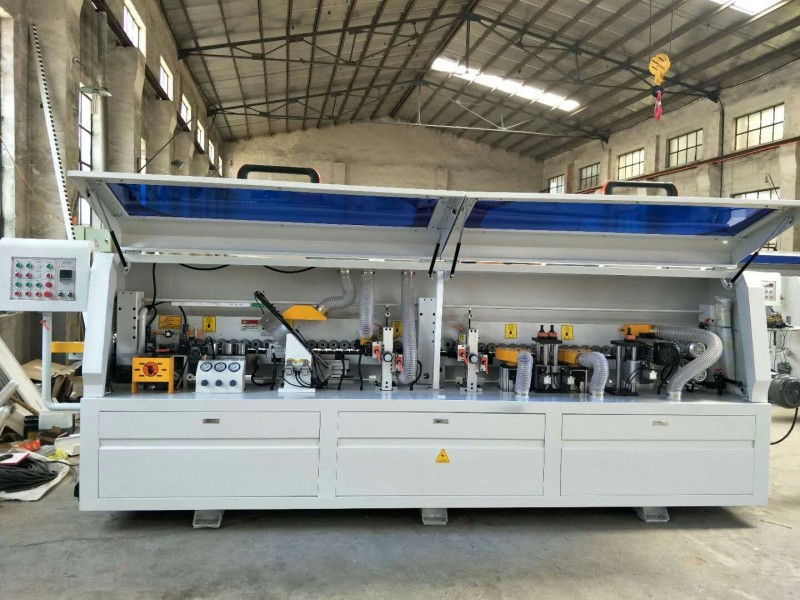 全自动封边机技术参数: 1、封边机条厚度:0.5-2mm 2、板材厚度:10-48mm 板材窄:12cm 3、输送速度:11.5米/分钟 4、预热-涂胶加热管总功率:1.5kw 5、涂胶电机:0.37kw/个 6、齐头电机:0.55kw*2个 7、精修电机:0.75kw*2 8、刮边机械控制 9、抛光电机:0.18kw*2 10、输送电机:1.5kw*1 11、变频器:1.5kw*2 12、空气压缩机气压:0.8mpa 13、电源线:380v带领线 14、外形尺寸:3600mm*800mm*1500mm长宽高 用途及介绍: 一、封边机是一种代替手工将封边程序:输送——涂胶贴边—— 切断——前后齐头——上下修边——上下精修边——上下刮边——抛光进行高度自动化的机器,主要分为半自动和手提两种。封边机是木工机械的一种。 封边机是木工机械当中的一种.属实木机械类.封边机顾名思义就是用来封边用的.不过把封边的程序高度自动化的.能完成直面式异形封边中的输送——涂胶贴边—— 切断——前后齐头——上下修边——上下精修边——上下刮边——抛光等诸多工序。