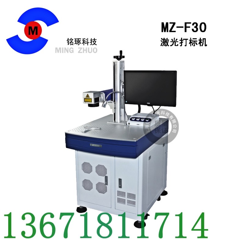 上海铭琢激光科技有限公司是一家集科研、开发、生产、销售、服务为一体的专业激光设备制造企业,公司一直执着于将激光行业高新技术应用于中国民族工业,使激光技术适用于生产,实现机械自动化应用,公司与多家着名大型企业合作,研发了适用于电子、太阳能、汽车行业等自动化激光流水线,并得到了客人一致认可,公司新研制的机型,与韩国通力合作,改进外观设计并得到了国外先进技术支持,与同类产品相比有着更大的优势。 采用光纤激光器输出激光,再经高速扫描振镜系统实现打标功能。光纤激光喷码机的电光转换效率高,采用风冷方式冷却,整机体积小巧,输出光束质量好,可靠性高。可雕刻金属材料和大部分非金属材料,主要应用于对深度、光滑度、精细度要求较高的领域,如钟表、首饰、IC、电子元器件、手机、模具、汽车配件、五金刀具等各行各业行,同时也可位图图片打标等。 机型特点: 1.光束质量好: 光纤激光喷码机CW-F光束质量比传统的固体激光打标机好很多,聚焦光斑直径不到20um。发散 角是半导体泵浦激光器的1/4。特别适用于精密、精细打标。 2.使用成本低廉: 电光转换效率高达到60%,整机耗电约300W,是灯泵浦固体激光打标机的1/15,大大节省 能耗支出。 3.免维护操作: 激光器无需进行任何维护,也不用调整或清洁镜片。 4.激光器使用寿命长: 光纤激光打标机CW-F使用激光二极管作为泵浦源,应用第三代光纤激光技术,高速永久 免维护,其平均工作时间可达10万小时。 5.体积小巧(全球体积小)、适用于恶劣环境: 激光器通过光缆实现激光距离传输、结构紧凑。散热效果好,无 需庞大的水冷系统,只需简单的风冷即可。 6.在一定冲击、震动、较高温度或有灰尘等恶劣的环境下也能正常工作。 加工速度快:加工速度是传统激光打标机 的2-3倍。 7.耗电少的激光打标机,小能耗为200w。 8.设备性能稳定,定位精度高,可24小时连续工作。 应用行业: 可以雕刻非金属和部分金属材料。广泛应用于食品包装、饮料包装、医药包装、建筑陶瓷、服装辅料、皮革、织物切割、工艺礼品、橡胶制品、电子元件、外壳铭牌、精密五金、卫浴洁具、眼镜钟表等行业。 技术参数: 型号规格 MZ-F30 激光波长 1064NS 激光功率 20w 激光重复频率 20kHz-200kHz 小线宽 0.005mm 打标速度 ≤15000mm/s 每秒可达5~8个字符 (2mm字高) 打标深度 ≤3mm(视材料而定) 重复精度 ±0.003mm 标记范围 110x110mm~600x600mm(可选) 冷却方式 风冷 工作电源 AC220V/50Hz/2A 联系电话: