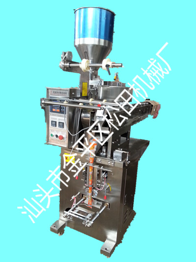 产品详细说明: 机器特点: 精密度高、构造合理、操作、维修简易。 产品说明: 该机引进国外高新技术,吸取国内同仁之精华,采用先进的进口光电眼控制系统。两袋内包装袋分切精确。使用进口无极调速上学进式旋转、可调性强的下料系统。自动完成制袋、计量、充填、封合、计数、分切等功能。 机器用途: 适合于制药、食品、化工中有粘性或无粘性的粉末包装,(如:奶粉、豆奶粉、麦片、爽身粉及各种医药、农药、粉末) 包装材料: 玻璃纸/聚乙烯、聚脂/聚乙烯、聚脂/聚丙烯、BOPP薄膜、尼龙复合膜等可热封的复合包装材料。 技术参数: 制袋尺寸:L50-150mm;W50-140mm 计数范围:30-50ml 包装速度:35-80(包/分) 功率:1.8kw 重量:355kg 外形尺寸:690*970*1740mm