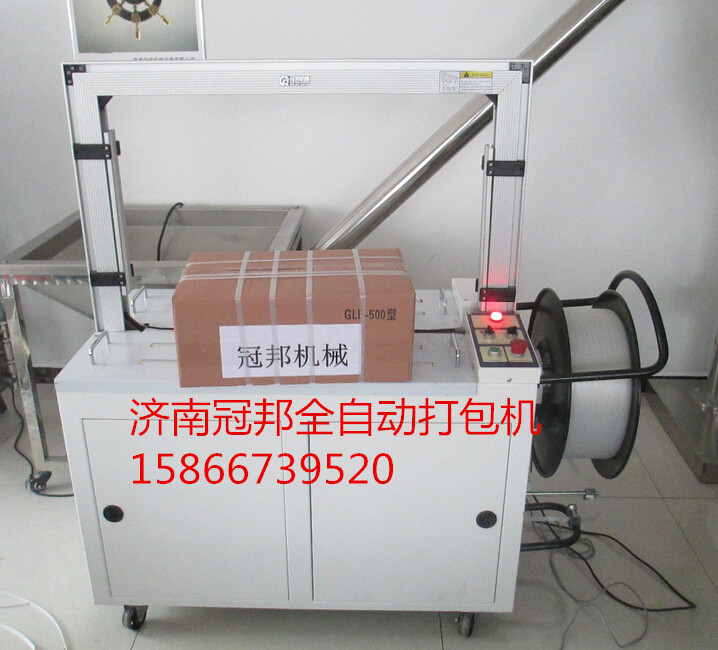 临沂打包机、全自动捆扎机@ 济南【冠邦】优质低价格 首先将物品放置在打包机平台上,jngbjx1509zgh将打包带安(打包带宽度、种类,可依据打包物品选择)机器示意图穿好,把打包带经过机芯传出,打开电源打包带自动穿过弓字架,按动脚踏开关即可实现自动打包,无需人工牵带子。也可达到自动按键上,用物品去碰触机器面板上的碰触开关,实现自动打包,速度快调高效率。 弓架尺寸:W850 H600 外形尺寸:W1450 D610 H1530 台面高度:820mm PP带宽:8-19mm 捆包速度:1.5秒/道 电 源:,220V(50Hz) 380V(60Hz) 功 率:850W 重 量:380Kg 打包机/guanbang/productlist/list-108-1.html 济南打包/guanbang/product/2013-8-17/582.html 高台打包机 济南冠邦包装机械有限公司,专业研发生产高台打包机、低台打包机、全自动打包机 封箱打包一体机设备,常规机型工厂现货供应并提供非标定做服务,地址:济南市花园东路3333号 。济南冠邦拥有专业技术人员、工程师、和销售售后服务人员,形成一支高素质年轻化极富团队创新精神的队伍 。公司始终以公司始终以“质量求生存,诚信求发展”为宗旨,一如既往为客户提供可靠的产品,完善的服务,让您买的放心,买的安心,用的顺心。 济南冠邦机械售后服务承诺:一年三包-终生维修-量身定做-长期跟踪服务-上门安装调试。 工厂电话:0531-58760697 手机:(朱经理) (冯经理) QQ: 1492283522 2398968505 ------------------------------------------------------------------------------------