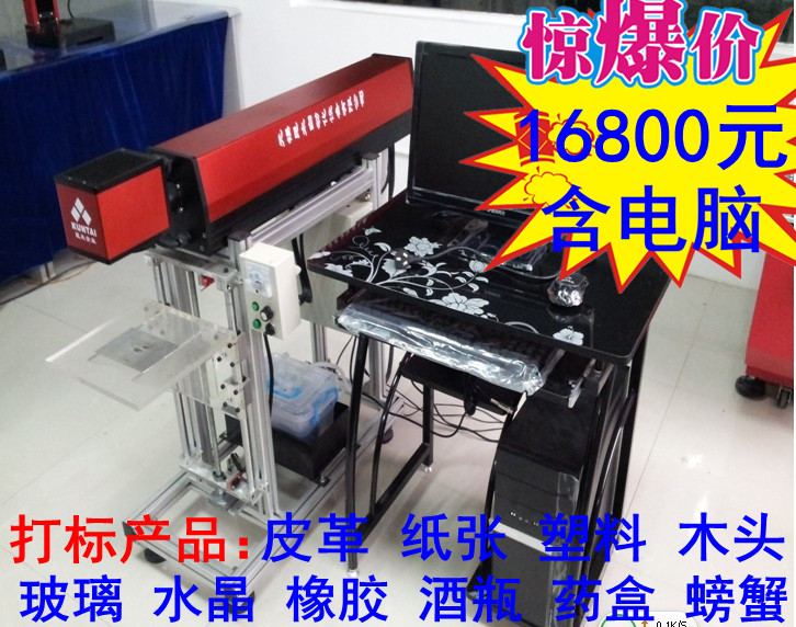 CO2系列激光打标机 该机适用于非金属材料的精细打标和雕刻,可加工螃蟹,塑料,橡胶,木材,玻璃,大理石,皮革,标签,竹子等。工作精细美观,整机体积小,电脑控制输入和输出,操作简单。 40w性能指标: 激光介质:CO2 激光波长:1064nnm 激光功率:40W 打标线宽:0.2MM 打标速度:0-7000mm/s 打标深度:0.01-2MM(视材料) 小字符:0.6MM 打标工作台:85mm×150mm 打标区域:70mm×70mm100mm×100mm 《150mm×150mm 200mm×200mm》