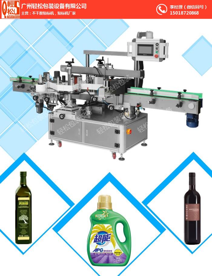 广州轻松包装设备有限公司是一家专业生产全自动双面不干胶贴标机、全自动漱口水贴标机、洗发水不干胶贴标机、椭圆瓶全自动贴标机、全自动洗衣液贴标机。适用于圆瓶、方瓶、椭圆瓶、锥度瓶等物体的单面和双面自动贴标。加装相应机构可实现圆瓶圆周贴、前后对称贴标、方瓶一标贴三面或四面等功能。广州所有范围可以送货上门。