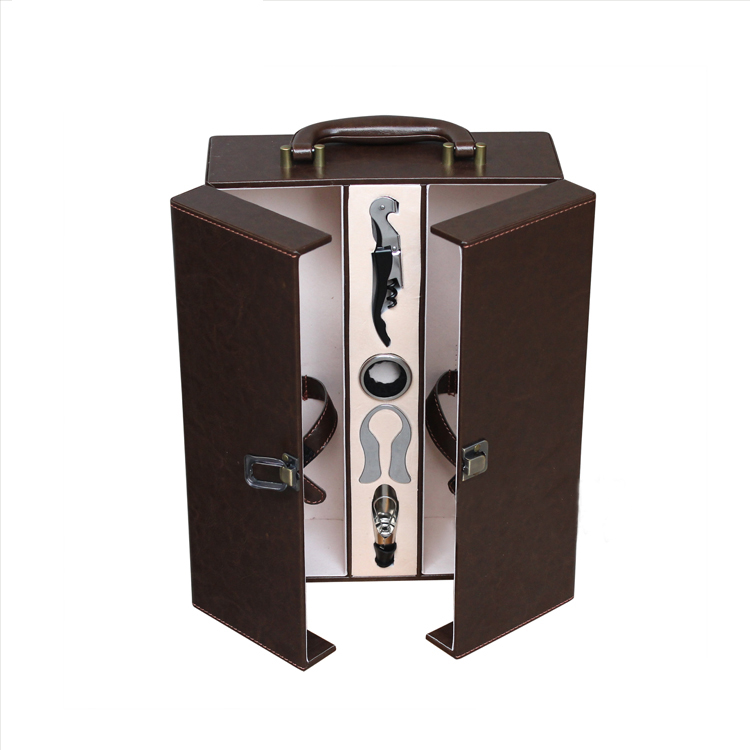 【品 名】 双支红酒皮盒 酒类包装酒盒红酒包装红酒皮盒特别的红酒礼盒 :红酒包装礼盒 红酒礼品包装盒 红酒礼盒包装 红酒礼盒设计 新款双支装皮盒红酒包装 带4件套酒具 法国波尔多标准瓶包装 【编 号】 JN-P2040 【尺 寸 】 350*250*130MM 【用 途】 装750*2毫升红酒(葡萄酒),提供红酒档次,增加红酒营销价值 【材 质】 密度板材料(中纤板)及PU材质+黑色绒布+金色五金 【配 置】 配金属方形锁扣+4件套酒具 【特 点】 皮质用优质皮质,上盖内有海绵,外观饱满,是性价比高的红酒皮盒 【产品参数】 盒子上下底盖为3厘板,边框为4厘板 单个气泡袋包装,10套装一箱 【客户群体】 红酒商、礼品公司、企事业单位 【增值服务】 盒子表面可做LOGO:凹凸印,烫金,丝网印刷 关于巨诺品牌:义乌市佰弘.巨诺工艺制品有限公司是义乌市国成纸品厂和义乌市美义包装厂组建成而,公司生产基地位于浙江省义乌市,占地12000平米,拥有标准厂房8000平米,全套流水生产线3条,员工162人,全部投入高端礼盒的生产,月生产能力达到40000个,目前公司80%的订单出口欧美、韩日等国际市场。2013年公司出口总额达到1200余万美元,2014年公司决定在维持国际市场的同时将加大对国内市场的开发,巨诺期待与您共同成长! 关于巨诺产品:酒盒、月饼盒、手表盒、化妆盒、首饰盒、保健品盒、五金工具盒、礼品盒、皮盒、木盒、纸盒、布艺盒、台历、笔筒、文具盒、收纳盒、茶叶盒、领带盒、香水盒等产品专业生产加工的有限责任公司 关于巨诺风格:我们希望能将多年的外贸产品经验融入国内市场,把国外流行元素与中国文化相结合,打造更具特色的产品! 关于巨诺定位:打造高端皮具包装出口品牌! 关于巨诺服务:我们致力于成为您的专业采购顾问! 关于巨诺成员:我们把责任放在首位!赢利信任-珍惜信任