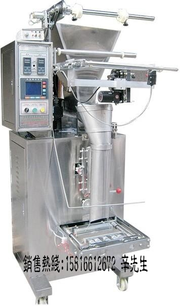 机械名称:粉剂包装机 用途:适用于包装奶粉、芝麻糊、调味品、面粉~葡萄糖,冲剂等物品的包装。 特点:该机采用全自动电脑控制,步进电机拉膜。 ?密封性能好、环保,避免漏料、受潮。 ?使用螺杆下料能使计量误差减小至±1%,计量更准确。 ?工作速度可大大提高,杜绝漏料,不产生粉尘。 技术参数Technical parameters 制袋长度(Bag length) L: 50-140mm W:40-130mm 计量范围(Measuring range) 1-10或or 10-50g 包装速度(Capacity) 50-80bag/min 电压(Power) 220VAC/50HZ/1.2KW 外形尺寸 (Machine size) (L*W*H) 870x650x1650mm 机器重量 (Machine weight)260kg