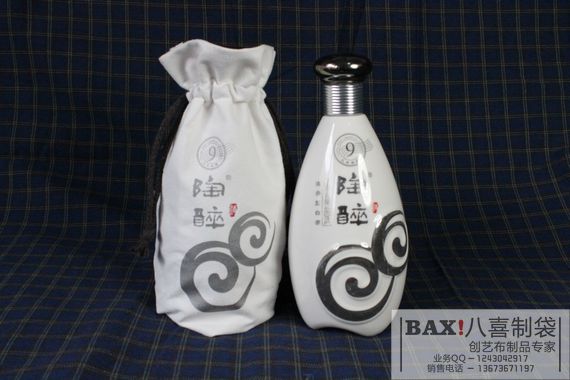 中国是酒的故乡,酒和酒类文化一直占据着重要地位。酒是一种特殊的食品,是属于物质的,但酒又融于人们生活之中不可缺少的东西。]作为一种特殊的文化形式,在传统的中国文化有其独特的地位,其中也衍生出了酒政制度。在几千年的文明历史中,酒几乎渗透到社会生活中的各个领域。 文化的酒也更需要一个文化的袋子。 专业帆布麻布绒布白酒袋礼品酒袋定做 详询: 业务部:郑州农业路27号 手机: 杨宇龙(先生) 电话:0371-65917170 QQ:1243042917 2534347989 电子信箱:1243042917@qq.com 网址