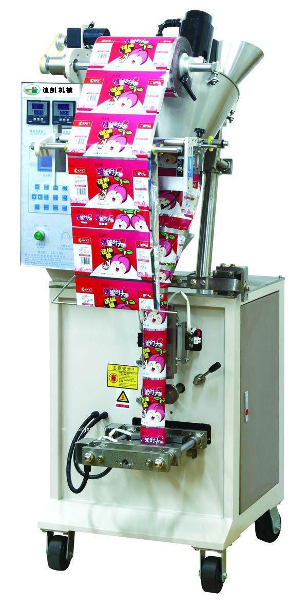 一、主要性能和特点 1、整机结构紧凑,牢固,设计合理,简洁。 2、螺旋计量,步进电机驱动设计合理、可靠,性能稳定。 3、速度快,精度高,噪音更低,故障率低。 4、全自动从计量,充填制袋,日期打印到产品输出一次性完成。 二、适用范围 适合不粘,如流动性好的粉末,豆粉,面粉,胡椒粉,饲料粉,奶粉,咖啡粉等粉状类物料的包装。 三、技术规格 机型 DK-320C/320XC 薄膜宽度 320mm 制袋长度 30-200mm 制袋宽度 50-150mm 计量范围 50-250ml 包装速度 5-60袋/分钟 卷材外径 Max.300mm 薄膜厚度 0.04-0.08mm 电源规格 220v 50/60Hz 2.4KW 机器重量 350kg 制袋型式 背封、三边封、四边封