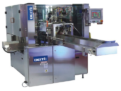 BT-8C全自动给袋式包装机设8个工位,是专为较大尺寸预制袋设计的,可包装宽160-300mm ,长150-390mm的单层PE,PE复合,CPP复合,铝箔等材质包装袋,大包装重量3000g,适用于粉状,颗粒状,固体,液体,酱体等物料的包装,实现大尺寸和高速度的完美结合,并且拥有强大的数字化调节和自诊断功能,操作方便快捷。 BT-8C具备自诊断显示系统的数字化给袋式全自动包装机技术参数 设备型号 BT-8C 适用范围 粉状,颗粒状,固体,液体,酱体等 包装袋尺寸 宽:160-300mm 长:150-390mm 灌装重量 大3千克/袋 包装速度 25-55袋/分 包装袋材 单层PE,PE复合材质,CPP复合材质,铝箔等材质 包装袋形式 平袋,自立袋,拉链袋,异形袋 设备材质 主要组件及外观部分:SUS304/SUS316 使用电源 220/380V 3相电,50/60赫兹,4.2千瓦 压缩空气 500N Litre/分 6kg/平方厘米 包装速度取决于包装形式及包装尺寸