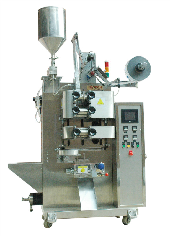 HT-K119L系列高速粉剂包装机 HT-K119L系列粉剂包装机是针对粉末物料实现三边封口、高速包装而设计的单辊筒包装机械。该机仅采用一段辊筒,同时实现横封与纵封封口。花纹采用完整连续的棋盘纹,封口牢固美观。该机采用先进的PLC集成控制系统,通过独有的彩色触摸屏可实现包装速度、计量调整等参数的在线设置,先进的光电自动校准技术,极大的节省了调整时间及耗材。同时配有方便开袋的易撕口切口装置,实现了制袋、充填、封口、光电自动校准、切断、计数等自动包装过程。 适用范围 咖啡粉、奶茶、调味粉、奶粉、面膜粉、果蔬粉、药品、保健品、农 药粉剂等。 技术参数: 制 袋 尺 寸 长40-160mm(改变袋长需换辊筒 宽30-90mm 包装 速度 (Packing capacity) 20-120袋/分钟bags/min 计 量 范 围 (Filling range) 1-50g 包装材料(Packaging Materials) PET/PE、PET/AV/PE、 NY/AL/PE、NY/PE, etc 机 械 功 率 (Power) 3KW/AC 380V 外 形 尺 寸 (Dimensions) L1400×W900×H1550mm 封口形态(Pocket making method) 三边封(Three sides sealed) 净 重(Net weight) 400Kg 如有特殊需求,可向本公司定制