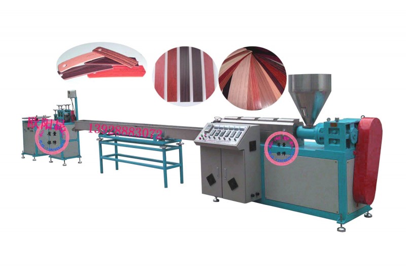 PVC ABS封边条挤出生产线 封边条生产设备 家具封边条挤出机 funiture edgings extrusion line 广州永拓塑机可提供PVC、ABS家具封边条生产的整厂设备及生产工艺。 PVC、ABS封边条主要起到对家具断面固化、美化、装饰的作用,同时还起到防止有害气体溢出、防止水进入板材内部的作用。 PVC、ABS封边条广泛应用于家具、建材、室内装潢、软膜天花等多个行业领域。 SHG-55 PVC、ABS封边条挤出生产线 SJ55/25单螺杆挤出主机---三维可调冷却水槽----牵引机----自动收卷机