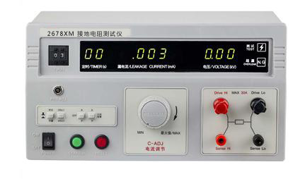2678XM接地电阻测试仪是按照GB、IEC、ISO、BS、UL、JIS 等 国际国内的安全标准要求而设计的,接地电阻的指标是衡量各种电器设备安全性能的重要指标之一。它是在大电流(25A或10A)的情况下对接地回路的电阻进行测量,同时也是对接地回路承受大电流指标的测试,以避免在绝缘性能下降(或损坏)时对人身的伤害。本测试仪是为满足以上要求为生产车间及实验部门提供高性能测试仪器而开发生产的。 本仪器对供电电压要求不高,测量精度高,速度快,使用方便,特别适用于要求高的实验室和自动检测线上使用。新增断线报警选择功能(即开路报警)可以非常方便地知道仪器是否工作在正常测试状态,用户可以根据实际需要选择是否需要此项功能。本仪器采用3?位数字显示,读数方便,采用优化设计,整机具有极高的可靠性和稳定性。本测试仪适合于不同的国家标准:如符合GB4706.1-1998家用和类似用途电器的安全标准中,通用要求有关条款规定(其中RK2678Y符合GB9706.1医用标准要求)。 二、2678XM接地电阻测试仪 技术规格 1、测量范围 0~200mΩ±(5%+2个字) (25A) 200~600mΩ±(5%+2个字)(10A) 2、测试时间 0~99s(连续可调) 3、 测试电压 < AC 12V/6V(RK2678Y) 4、 测试电流 AC 5~30A±5% 5、 过流报警 > AC 30A 6、 报警电阻值 0~200mΩ±(5%+2个字)(AC 25A)连续可调 200~600mΩ±(5%+2个字) (AC 10A) 连续可调 7、 使用条件 (1)温度 0~40℃ (2)相对湿度 <80%RH (3)供电电源 AC 220V±10% 50Hz 8、 外形尺寸 315mm×250mm×165mm 9、 重量 15kg