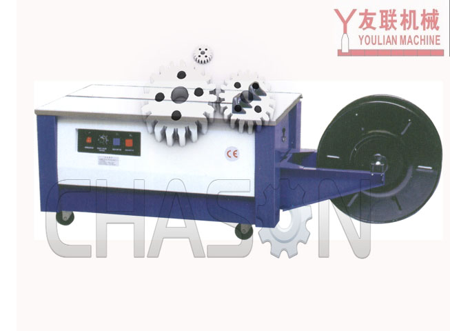 KZB低台半自动捆扎机(CH) 产品特点: 半自动聚乙烯塑料带为捆扎材料主要用于商业、邮政、铁路、银行、食品、医药、书刊发行等行业的纸箱、木箱、纸包装、柳编箱、布包捆扎;在插入机用带后,机器能自动完成聚带、粘合、切断、出带的捆扎过程。瞬间加热:打开电源后5秒钟即可捆包;可适用各种规格之PP带;可处理6-15MM的PP带节电功能;机器停止捆扎工作后运行35秒钟即自动停机捆扎质量高:包装带粘合精确、牢固.工作速度快、效率高、省时省力、打包质量高。 技术参数: 型号 KZ900L 额定功率 220V 250W 捆扎速度 1.6sec/strap 聚丙带宽度 6-15mm 重量 75kg 外形尺寸(长*宽*高) 940*620*580mm KZB Low desk strapping machine Introduction : semi-automatic binding machine takes polythene plastic strap as binding material, which is mainly used in packaging and binding of paper cartons, wooden cases and paper parcels in sectors of business, postal service, railway, and bank, for food, pharmaceutical, publishing and so on. Efficient and energy-saving in processing in a quality and speedy packaging fashion, the machine can automatically conduct strap collecting, thermal sealing, cutting and with full automatic stopping operation. Technical parameter : Model KZ900L Voltage 220V 250W Strapping speed 1.6sec/strap Strapping width 6-15mm Machine weight 75kg Machine size (L*W*H) 940*620*580mm