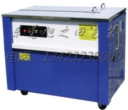 主要用途: 自动捆扎机是以聚乙烯塑料带为捆扎材料,主要用于商业、邮政、铁路、银行、食品、医药、书刊发行等行业的纸箱、 木箱、纸包件、柳编箱、布包件的包装捆扎。在插入包装带后,机器能自动完成聚带、热合、切断并出带、 且装有自动停机之功能工作速度快、效率高、省时省力、打包质量高。 特点: 捆包速度快、效率高:每条捆包仅需1.5秒。 瞬间加热、立即打包:首创速热系统热熔设计,仅1V低电压安全性高。 设有自动停机装置,可以调节电路PC板上Moter Timer电位器来改变停机时间, 马达会自动停止,进入待机状态,省电实用。 电磁离合,快速平稳:连轴式传动,速率快、运转无声,磨损小,故障率低。 技术参数: 电源: 220V 功率: 0.65KW 大捆紧力:60Kgs PP带宽度: 6-15mm 小捆包物:60mm 大捆包物:不限