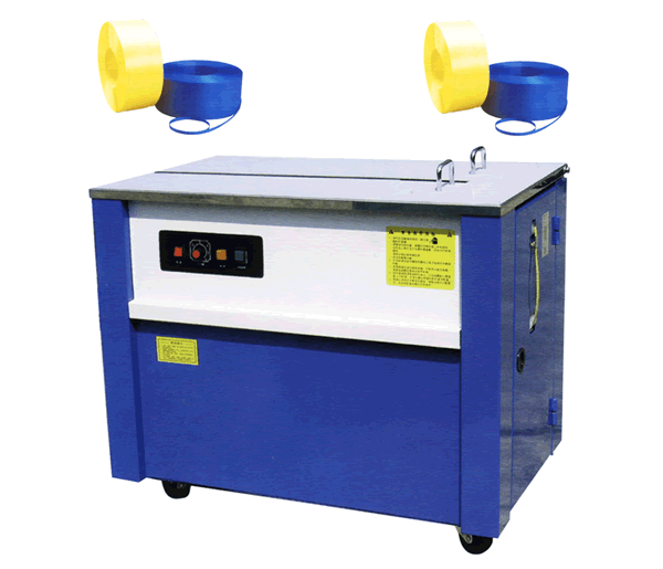 普通型打包机(高台) 主要用途 广泛应用于各行业,适于纸箱打包、纸张打包、包裹信函打包、药箱打包、轻工业打制品包、五金工具打包、陶瓷制品打包、汽车配件打包、日化用品打包、文体用品打包、元器件打包、铝型材打包等各种大小货物的打包捆扎。 技术参数 电 源:110V/220V 50Hz/60Hz 电 机:250W 大捆紧力:60Kgs PP带宽度:6~15 小包装尺寸:60 大包装尺寸:不限 捆包速度:1.5秒/道 PP带纸芯:¢200 机器外形尺寸: 895*565*735mm 重 量:90Kg 原理及特点 1、捆包速度快、每条捆包仅需1.5秒;瞬时加热,5秒钟内可使加热片工作,进入优秀打包状态; 2、60秒内不操作,自动停机、进入待机状态,省电; 3、改进设计、精心制造,使用范围广,不管大小包装,不用调整机器就可以打包; 4、该机属机械式结构,部分采用进口零件,后刀刃稳定可靠,调整方便等特点; 5、该打包机台面较高,操作起来方便顺手,适于打包较轻的物品。