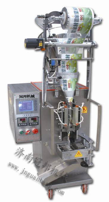 粉剂包装机_调料粉包装机_饺子粉包装机 DXD粉剂包装机 中药粉 豆奶粉 调料粉 兽药粉包装机 医药粉包装机 农药粉包装机 名称型号:粉剂自动包装机DXDF60E gbgb10jx 用途特点:容积式螺杆充填系统步进电机控制打料螺杆充填精度准确,该机用于包装袋装的粉状类,计量系统为步进电机控制。如:农药、化肥、医药、兽药、面膜粉、奶粉、调味品等。螺杆灌装适用于流动性不好的物料,具有快速、准确、经济、实用的优点。 技术特点: 1.本机采用中英文液晶显示,操作指示一目了然。菜单化的操作界面,极奇简单方便。 2.采用CPU集中控制系统,智能光电定位,抗干扰强,连续两袋光标异常即停机报警。 3.具有定位停机功能,带色标的包装材料生产时如包材走完可自动停机。 4.全自动测量包装袋的长度,无需人工参与包装膜的长度设定(指带有色标的包材)。 5.智能化的故障诊断并中文自动显示出错位置(如:光电出错、行程错误等)。 6.智能型温控仪双路控制横、纵封模具的温度,双转动臂封合,热合效果更佳。 7.新型摇头装置,可上下升降,左右旋转机头,便于拆卸清洗料桶,操作简单方便。 8.新设计的一体化电动切刀,可N袋切断,可避免卡袋现象,切刀耐用,可在机器运行时调整切刀位置,从而方便了用户的操作 。 技术参数: 性能/型号 : DXDF60E 包装能力(袋/分):30-60 计量范围 (毫升):1.0-50 制袋尺寸 (毫米):长(L)50-180,宽(W)40-120 电源电压 :380V/50Hz三相四线制/也可选订220V 功率消耗 (瓦):1600(加热heating 180×4) 外形尺寸 (毫米):宽(W)650×长(D)750×高(H)1600 净重 (公斤):200 更多产品详细介绍请来电来函咨询,如方便还可到公司现场咨询演示,我们可根据客户的要求,作适当的修改或相应功能的增加。
