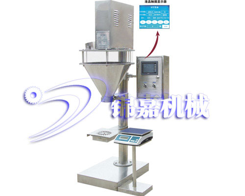 设备名称:粉剂定量包装机 锦嘉教您如何操作:步、称皮重。第二步、按设置1,输入皮重,按确认。第三步、按设置2 ,输入净重加皮重,按确认。供量代数按设置6调节,频率调制按设置8。 该设备的常见故障如下:不下料情况,有可能是由于光电开关的灵敏度过高或被遮挡引起的,此时请调整光电开关的灵敏度到合适的位置或移开遮挡物。2.如果该机出现脉冲数增加,而实际重量减小,待加料后,实际重量又超差的现象,这是由于料斗中料位差太大引起的,调整几袋之后,即可恢复正常。因此再人工加料时要合理地控制料斗中的料位或在自动加料时调节预置袋数,以确保设备的正常运行。3.如果校验秤时出现零漂现象,可能附近有较大的气流或震动源;另外如果环境湿度较大使电路板受潮也会出现此现象,这时请小心卸下电子秤外壳,用电吹风驱赶潮气,注意:电吹风不要离电路板太近,不应对某一处长时间加热驱潮,以免损坏元件。 设备型号:ZJDF-B型 粉剂定量包装机自动完成制袋、计量、下料、封合、分切、计数、热压批号等功能。 锦嘉教你如何对粉剂定量包装机简易操作:步、称皮重。第二步、按设置1,输入皮重,按确认。 第三步、按设置2,输入净重加皮重,按确认。供量代数按设置6调节,频率调制按设置8。 粉剂定量包装机与物料接触部分的料斗、计量螺旋、搅拌等均采用不锈钢材料制造;使用高稳定、 高精度称重传感器、称重模块;界面操作简单、显示直观; 独立的包装重量输入、称重重量显示窗口, 显示窗口采用高亮度LED显示;菜单操作简洁、直观、友好;人工协助上袋(或桶),气动夹袋; 独立称量系统称量,称量精度高,速度快,称重传感器采用托利多称重传感器; 异步电机控制螺旋喂料,变频器调速,大、小双螺旋快慢计量下料,控制精度高。 产品简介 1、粉剂定量包装机适用于化工、食品、农副产品等行业的粉状、粉末、粉体状物料的定量包装;如:奶粉、淀粉、农药、兽药、预混料、添加剂、调味品、饲料、酶制剂等; 2、自动定量包装机适合袋类、罐类、瓶类等各种包装容器粉剂定量包装; 3、粉剂定量包装机是集机、电、光、仪于一体,单片机控制,具有自动定量、自动充填、自动调整计量误差等功能; 4、速度快:采用螺旋下料、光控技术;精度高:采用步进电机及电子称量技术; 5、包装范围宽:同一台定量包装机在5-5000g内通过电子秤键盘调整及更换不同规格的下料螺旋连续可调;适用范围广:有一定流动性的粉剂状、粉体物料均可; 6、因物料比重和料位变化造成的误差可自动进行跟踪修正; 7、光电开关控制,仅需人工套袋,袋口干净,易封口; 8、与物料接触部位均采用不锈钢制作,清洗方便,防止交叉污染。 携手合作,共创辉煌,省级企业,值得信赖! 了解更多,详情咨询热线:0371-86656262 qq咨询:260303181 手机联络: 更多精彩产品请点击/ 粉剂包装机 粉末包装机 颗粒包装机 真空包装/product.html 包装机 包装机厂家 包装机价/bzj.html 定量包装机 兽药包装机 调味品包装/bz.html自动包装机 半自动包装机 全自动包装/ 色带打码机 钢印打码/ 液体灌装机 膏体灌装/ 热收缩机 热收缩包装机 PE膜收缩机