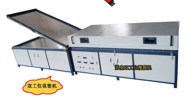 1.采用双进气道,吸力大,效率高 2.采用全烤漆喷涂,不掉漆 3.循环加热系统,智能温控,更准,更省电 4.结构件采用高刚件金属,不变形 5.双工位独立操作,循环加工,省时省力省人工 6.采用红外加热,加热均匀 7.循环真空系统,自动启停,省电 8.内有照明灯,方便掌握吸塑情况 9.功能多样,可生产各种板材和贴膜 10.左右工位实现不同功能 广泛的应用于各类橱柜门板制造、玻璃面板制造,实木饰面橱柜家居装潢,移门,家电等行业,制造出了国内先进的强化艺波生产线。 一、加工范围:使用PVC贴覆板式家具、移门、背景墙,床头柜,橱柜、工艺门、、模压门、板式门套、装饰墙裙板等。 二、使用基材范围:中、高密度纤维板,胶合板,实木板,金属板,石膏板,菱镁板等。 三、设备特征: 1、全国首创双工位不同宽度吸塑机,实现了pvc吸塑模高效稳定吸塑,同时操作工艺更简便,效率更高。 2、运用数字显示自动控制技术,操作简便,自动化程度高。 3、采用真空技术双走气道,走气性能稳定,工件成品率高。 4、工作台采用框式钢架结构,有效提高真空度,经久耐用。交换式工作台可进行一箱多件贴面,实现一机多用。 5、采用独特远红外节能恒温加热系统,节约能源,省时省电。加热均匀,从而减少产品的变形、起皱、脱胶等现象。 6、电控系统关键部件采用耐高温及高绝缘材料配置,运行安全可靠。 四、技术规格:外型尺寸:5300mm*1300mm*1400mm 大加工尺寸:2500*1250*500mm 工作台尺寸:2550mm*1100(1200)mm 总功率:15kw 电压:380v 重量:1T 型号:XSJ-SW-02A 成型长度:2500(mm) 成型宽度:1200(mm) 大成型深度:30(mm) 大成型面积:3(㎡) 生产速度:0.1(次/min) 工作气压:-0.1(Mpa) 电动机功率:5.5(kw) 真空泵:4L,8L,15L 样式:卧式 适用原料:PVC,pet,pvc膜,皮革,布艺等等 售后服务:一年