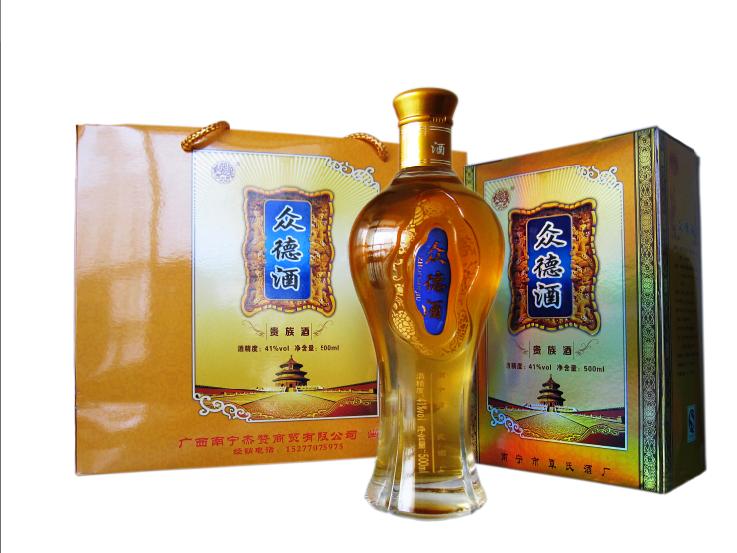 广西南宁杰赞商贸有限公司是一家经营多样化贸易的有限公司。公司自成立以来,就拥有先进的经营理念,秉承“诚信、责任、高效、服务”的宗旨。以“团结合作、开拓创新”的团队精神,时刻寻求新的发展机会。以“客户至上、诚信”为原则,与多家企业建立长期的合作关系。新机遇给公司注入新活力。公司引进先进的科学管理体系,一流的营销团队,致力于新的白酒品牌。“众德酒”俗称“陶缸米酒”,是绿色健康饮品。目前,公司通过利用先进的酿酒技术,全心全意酿造醇香爽口的“众德酒 ”。“不求华丽,但求实在”,这是我们创佳酿的宗旨,也是我们工作的指向标。 产品介绍: 美酒的醇香、咖啡的优雅造就了非凡的众德酒。众德酒是具有百年醇香的特色酒,是餐桌常用酒。独具亮点:41°的众德酒,酒香醇厚、入口绵甜。酒后60分钟酒精浓度测试吹气值为0.000。没有酒后恶心、头痛的感觉;没有酒后伤身;没有酒精肝;您的身体会越来越好。喝“众德酒”,送健康礼,这是爱酒人士的优秀选择。