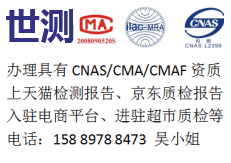 【深圳市世测检测技术有公司】办理{入驻京东商城质检报告、上天猫商城检测报告、电商到期续签质量报告、进驻超市检验报告、招商授权资质质量检测报告},电讯:158-8978-8473 吴可,资质初审驳回原因:请提供带有具有CNAS及CMA/CMAF认证,近一年内该品牌的质检报告。本中心能提供CNAS和CMA/CMAF质检报告。报告广泛用于网上商城:天猫、淘宝申诉/聚划算、京东商城众筹、苏宁易购、阿里巴巴、速卖通、敦煌网、亚马逊、拍拍、拼多多,微店,微信、微商等。网上超市:1号店,当当,顺丰优选。实体卖场:国美电器,天虹商场,苏宁易购、顺电实体店。大型超市:家乐福、大润发、华润万家、沃尔玛、乐购麦德龙超市。团购网:美团网、大众点评网、拉手网、糯米网等。电子数码店、电视购物、政府定单招投标、打广告登报刊登,大卖场、创新基金、高新技术认证、企业标准备案等需要产品质量检测报告。 那这类入驻一些电商平台,对厂家的要求会有哪些呢?下面我们就以天猫、京东网店为例: 京东入驻质检要求:质检报告复印件或产品质量合格证明。需提供近一年内送检的质检报告,或相对应批次产品的质检报告;需有国家质量监督检验中心检验专用章、第三方质检机构(具有CNAS及CMA/CMAF认证)也可以;商家每款产品均可以出具质检报告,每个品牌、每个一级类目,均需提交一份质检报告。特殊类目需要单独提供质检报告,详见各类目特殊资质要求。 天猫商城进驻:请提供质检报告的实拍图,需具有CMA+(CNAS或CAL)标志和质检机构签章,检测日期需在处罚日期前1年以内,质检报告需包含与页面描述一致的商品信息,质检报告需为对应正确的产品标准且必须包括安全类和材质类等关键检测项目,检测结果需为合格。 检测标准,内容,项目有哪些? 高分子材料检测检测范围 力学性能测试项目 ·拉伸性能 ·冲击强度 ·压缩性能 ·弯曲性能 ·落锤冲击 ·撕裂性能 ·摩擦系数 ·磨耗 ·剪切性能 ·蠕变性能 ·硬度 热性能测试项目 ·熔点 ·熔体流动速率 ·氧化诱导期 ·热变形温度 ·维卡软化点 ·线膨胀系数 ·玻璃化转变温度 ·导热系数 ·闪点 物理性能测试项目 ·密度 ·吸水性 ·水蒸气透过性 ·氧气透过量 ·交联度 ·冲击脆化温度 ·耐热应力开裂 ·灼烧残余(灰份) ·炭黑分散度 ·含水量 阻燃性能测试项目 ·氧指数 ·垂直燃烧 ·水平燃烧 ·烟密度 ·不燃性 光学性能测试项目 ·黄色指数 ·透光率 ·雾度 ·白度 ·彩色密度 ·光泽度 ·色差 电性能测试项目 ·击穿电压强度 ·介电常数 ·介质损耗因数 ·体积电阻率 ·表面电阻率 化学性能测试项目 ·耐酸、碱、盐溶液 ·耐环境应力开裂 ·耐丙酮、二氯甲烷等溶液 ·重金属含量 ·氯乙烯单体含量 ·脱色试验 ·蒸发残渣等卫生性能 ·有害物质限量 多种样品制备方式 ·注塑 ·压塑 ·冲裁 ·机加工 老化性能测试项目 ·人工气候老化 ·热老化 ·湿热老化 ·高低温老化