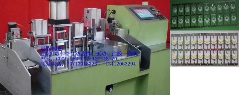 产品功能及特点: ★只需要一名操作员便将整个封装过程(包括全自动盖镜、压边及注胶等三个工序)一条龙完成,提升效率,节省人员,减低生产成本及劳动力短缺问题。(产能在每小时12K粒以上) ◆两边料盒上落支架,自动吸入和推出料盒。 ◆设有自检缺盖镜功能,以免缺镜后继续压边及注胶而报废灯珠。 ◆交替式注胶设计,注胶稳定均衡,分段速度控制,行程速度可以自由调整;协助有经验的工程师克服因不同品牌的胶水之内聚力和附着力带来金线旁的微小气泡。 ◆独特注胶咀设计,避免洪吸作用带来的气泡。 质保服务: 1、保证对其出售给客户的设备拥有完整的所有使用权和处分权,但不包括该机械设备的所有设计元素及概念。 2、出售客户之设备,自出售日起保质期一年。 3、保质期满,需族仍应负长期售后服务之责,遇换修零件时,酌情收取更换的标准件、零件、适当的维修工时费、交通费及运输费用。
