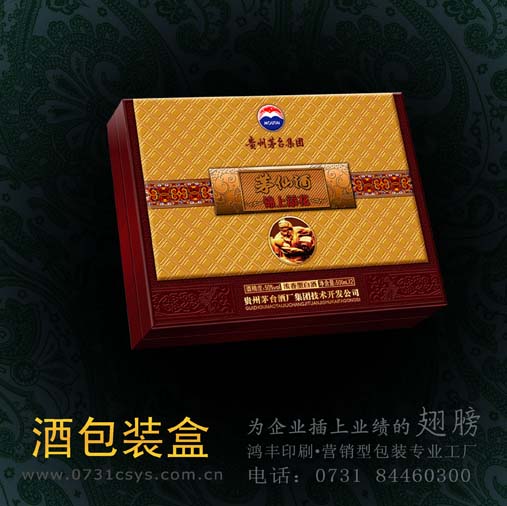 长沙鸿丰包装厂是一家集包装盒设计、包装盒印刷、包装盒设计制作为一体的大型包装盒印刷公司,15年来专注包装印刷品质,致力打造长沙印刷品牌 贵州茅台酒厂集团技术开发公司坚持“秉承传统酿造工艺,传承国酒文化”的经营理念,对传统酿酒工艺不断改进和创新,其研发能力走在白酒研究的前沿。从2008年起,公司加快了新型白酒的研发步伐,在产品工艺、口感上下功夫,注重口感柔和舒适,柔雅协调,研制出了“柔和酱香、柔雅浓香”两款新产品。为公司的跨越式发展注入了新的活力。 长沙鸿丰包装盒印刷厂为贵州茅台酒业印制的这款酒包装盒采用了多种工艺,有烫金的字体和UV字体,加上压纹工艺让此款包装盒尽显高档风范。 热烈欢迎您来长沙鸿丰包装厂洽谈业务! 相关阅读:葡萄酒包装盒印刷 国窖酒包装印刷