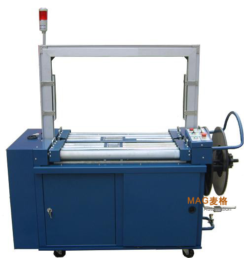 MG-102A无人化捆扎机采用: 1、桌面附加动力滚轮,适合捆包物大小不一,捆包线形状较不规则,且捆包线上带有电子眼传感器,衔接输送带可以达到完全无人化的功效; 2、采用LG“PLC”控制,法国“TE”,日本“OMRON”“MCN”电器保证了机器独特的优越性 3、独特的合金支架,特殊处理的钢件,日本新型的机械式结构,免加油的维护保养; 技术参数: 品名/规格 MG-102A无人化捆扎机 机器尺寸 1443×700×1523mm 台面高度 750mm 弓架尺寸 标准750×590mm 捆包速度 2.5秒/道 PP带宽度 9、12、15、19mm 电 源 220/380V 50/60Hz