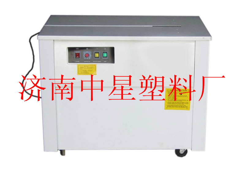 设备特点: 1.采用高品质继电器控制电路,能有效延长设备使用寿命; 2.采用2mm厚的加厚面板,是传统打包机的1.5倍,有效解决以往遇到重型的货物长期压后面板容易变形问题; 3.切割刀片选用精钢铸铁,经过淬火精密加工,使用寿命是普通打包机刀片3倍以上; 4.捆包速度快、每条捆包仅需1.5秒;瞬时加热,5秒钟内可使加热片工作,进入优秀打包状态; 5.60秒内不操作,自动停机、进入待机状态,省电; 6.改进设计、精心制造,使用范围广,不管大小包装,不用调整机器就可以打包; 7.该机属机械式结构,部分采用进口零件,后刀刃稳定可靠,调整方便等特点; 8.该打包机台面较高,操作起来方便顺手,适于打包较轻的物品。