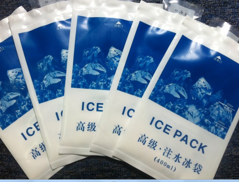 注 水 冰 袋 1、产品说明: 注水冰袋名称的来源在于使用前需要注水,注水之后,水与内容物反应成为极强的蓄冷产品。其内容物一般统称为冰晶。注水冰袋外袋材料多种多样,其中以PE袋为主要,质量随厂家不同而变化。注水冰袋采用反水口控制,以防止注水后渗漏。 2、适用范围: 注水冰袋适用于水产品、海虫、海鲜、肉品、奶制品、饮料、疫苗、试剂、家产品、花卉、锡膏等保冷、保鲜运输。一般配合泡沫箱或冷链专用箱使用,以达到地位呢冷藏运输的效果。 3、使用方法: 将冰袋的注水口分开,套在水龙头上,将水注入,根据自身需要决定注水多少。注水后10分钟,袋内成凝胶状,再将注好水的冰袋放入冰箱或冻库内,根据物品的冷冻时间需要作保冷使用。 4、注意事项: A. 注水冰袋内容物非食物,不可食用; B.无毒无异味,如因袋破获其他原因导致渗漏,可用水冲洗即可; C.可多次重复冷冻使用,保质期在两年左右。 D.特性: 以水龙头灌水至水位线即可,未注水时,携带方便。 5:产品规格: 400ML