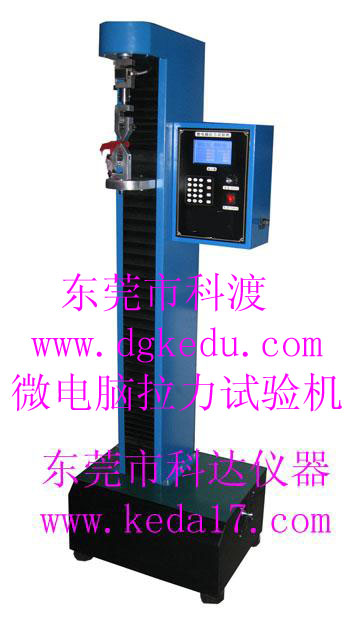 微电脑拉力试验机 拉压力试验机 本拉力测试机以高质量的变频电机、轴承、丝杆为传动机构,是根据市场需求而设计LCD数位显示、微电脑系统控制、高性能的机械结构为主体。整机以低噪音、低功耗、大动力、操作简单、构造小巧准确性高、功能齐全为核心。主要用于测试电线、金属、非金属、橡胶、建材……等之拉伸、伸长、剥离、位移、撕裂……等多种试验。 主要参数: 1、屏幕LCD显示 2、具有位移伸长率数字显示功能 3、容量:100kg、可选 4、单位切换:kg.N.IB互换 5、大行程(含夹具1000 mm):850mm 6、荷重分解度:1/20000 7、荷重精度:±0.1kg、±0.01kg 8、测试速度:50~300mm/min可调 9、有自动拉断停止功能 10.体 积:500(L)×350(D)×1700(H)mm。 11.重量(约):100kg。